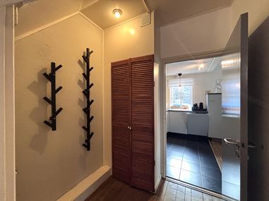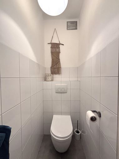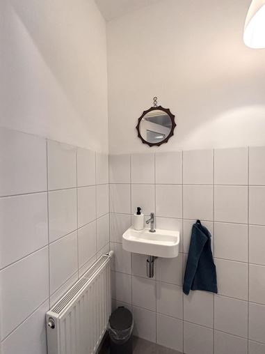 Upon entering the spacious hallway, you have access to the toilet and the living room with open kitchen. The modern kitchen is fully equipped with an induction hob, extractor hood, fridge with freezer compartment, oven and dishwasher.