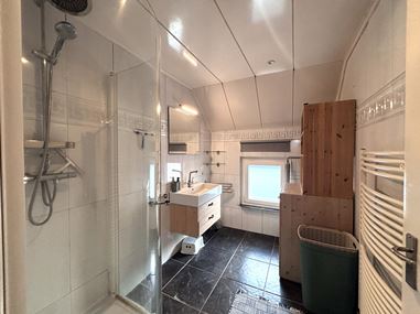 The staircase leads to the first floor, where you will find two spacious bedrooms and a modern bathroom. The bedrooms benefit from plenty of natural light, while the bathroom features a shower, washbasin and toilet. This floor offers a pleasant balance between comfort and functionality - ideal for everyday living.