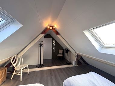 From the landing, another staircase leads to the second floor, where the third bedroom is located. Thanks to its quiet location and bright atmosphere, this room is perfect as a bedroom, home office or hobby space.