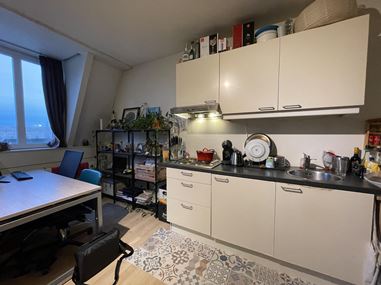 This spacious studio on the second floor features a modern kitchen and a new bathroom. Its location, a short bike ride from the bustling city center, makes this an ideal place to live.