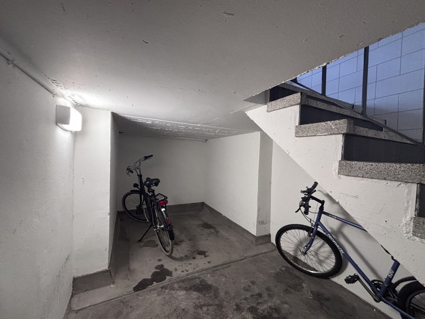 The apartment includes a spacious private storage room, ideal for storing bicycles and additional belongings.