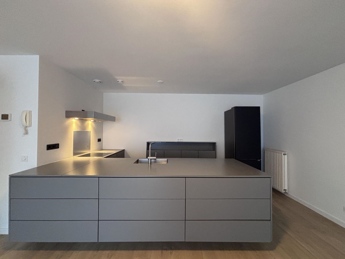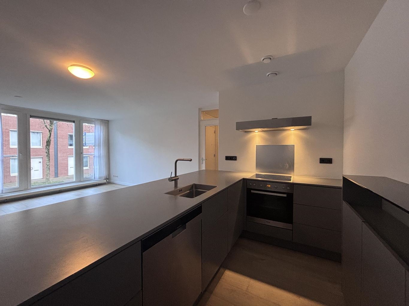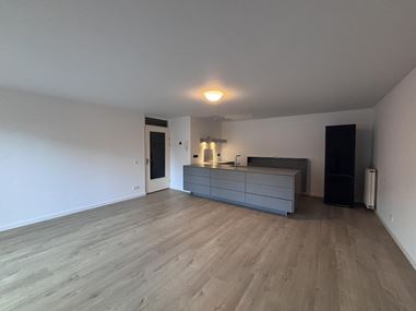 Via the entrance door you reach the hallway of the apartment, featuring a modern toilet with hand basin and a practical under-stair storage area. From the hallway you have access to the spacious living room of approximately 27 m², which is openly connected to the modern open-plan kitchen of approximately 10 m². Both the living room and kitchen are finished with laminate flooring.