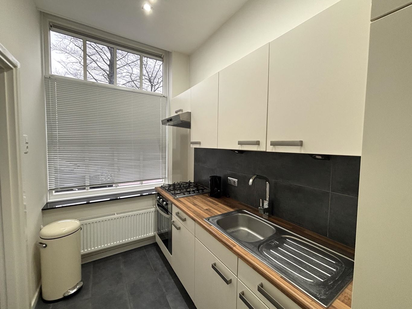 Aan de linkerzijde van de hal ligt de afgesloten keuken. Deze is netjes uitgevoerd en praktisch ingericht en beschikt tevens over de wasmachine en droger.