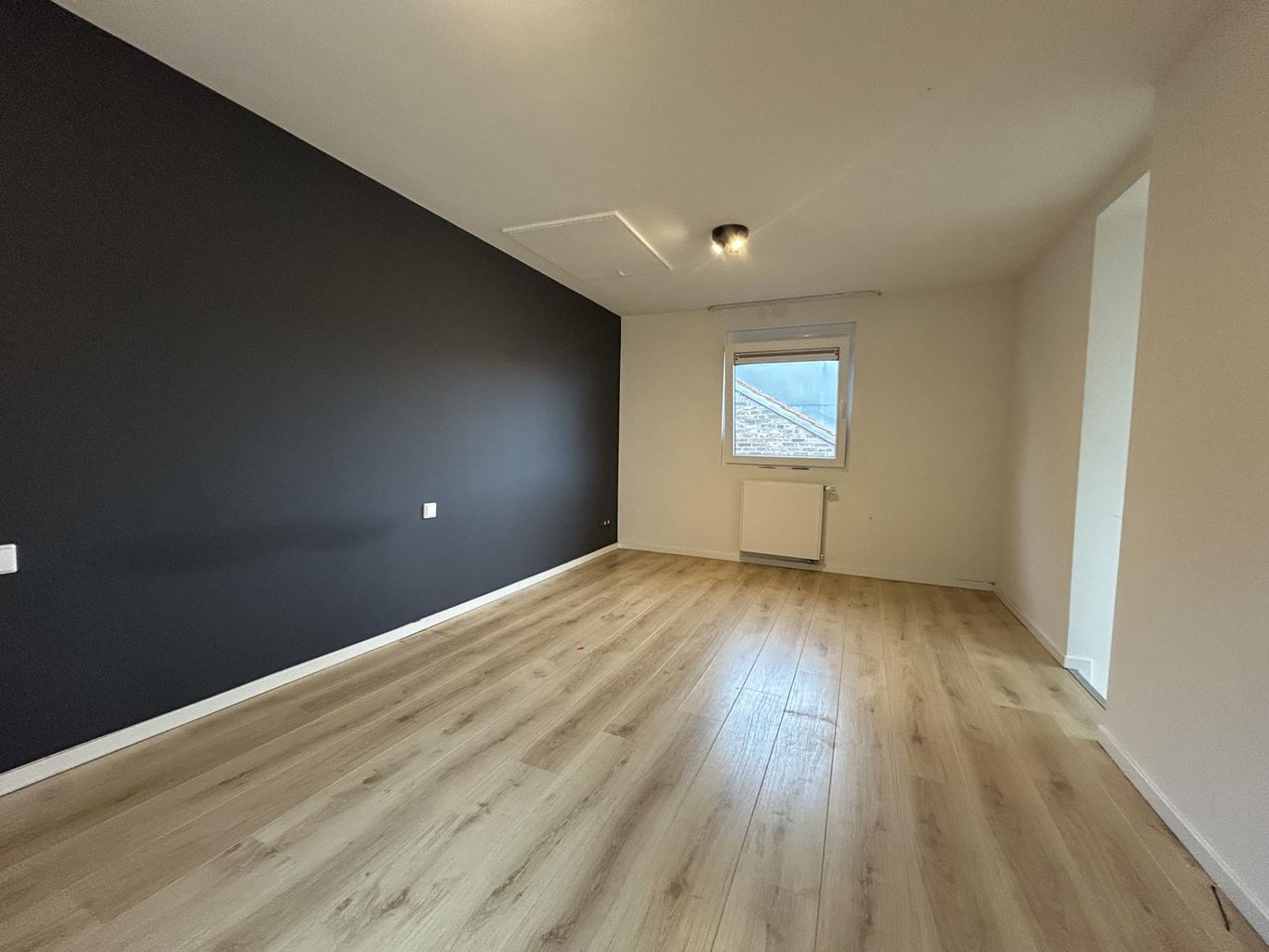 De slaapkamer is afgewerkt met een nette laminaatvloer en biedt voldoende ruimte voor een tweepersoonsbed en kastruimte.