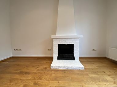 Entree met toegang tot de lichte woonkamer aan de voorzijde, voorzien van open haard en houten vloer. Via de ruime overloop, ideaal als zit- of werkruimte bereik je de moderne leefkeuken met volledige inbouwapparatuur.