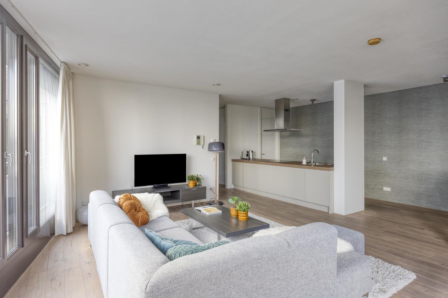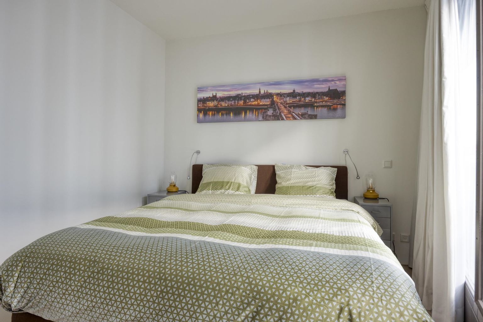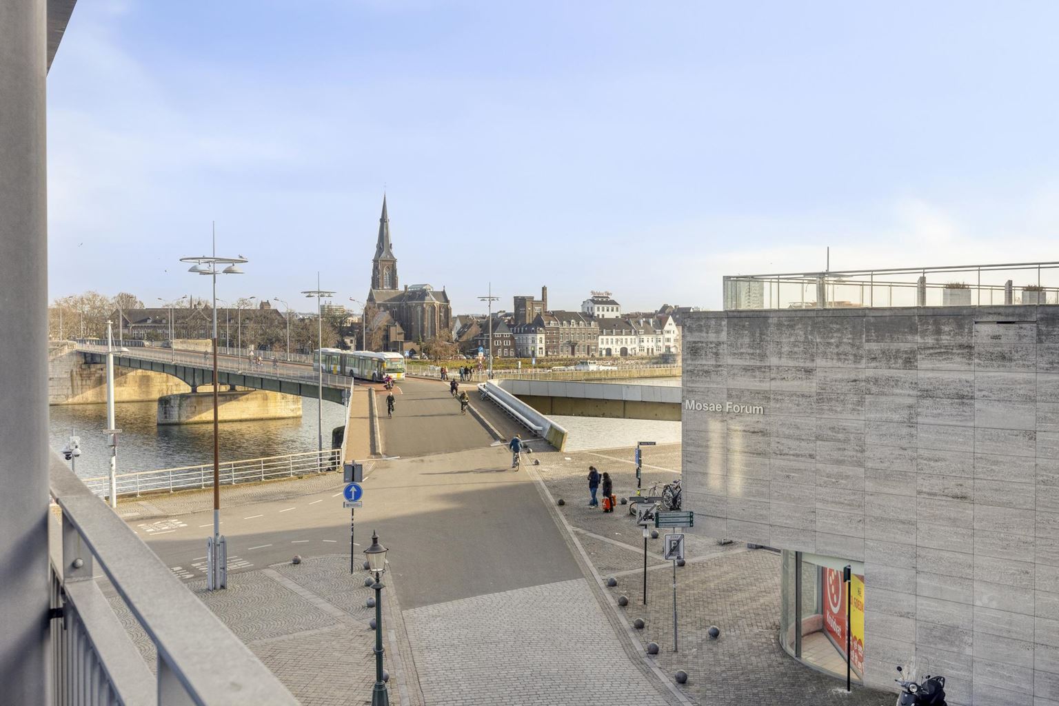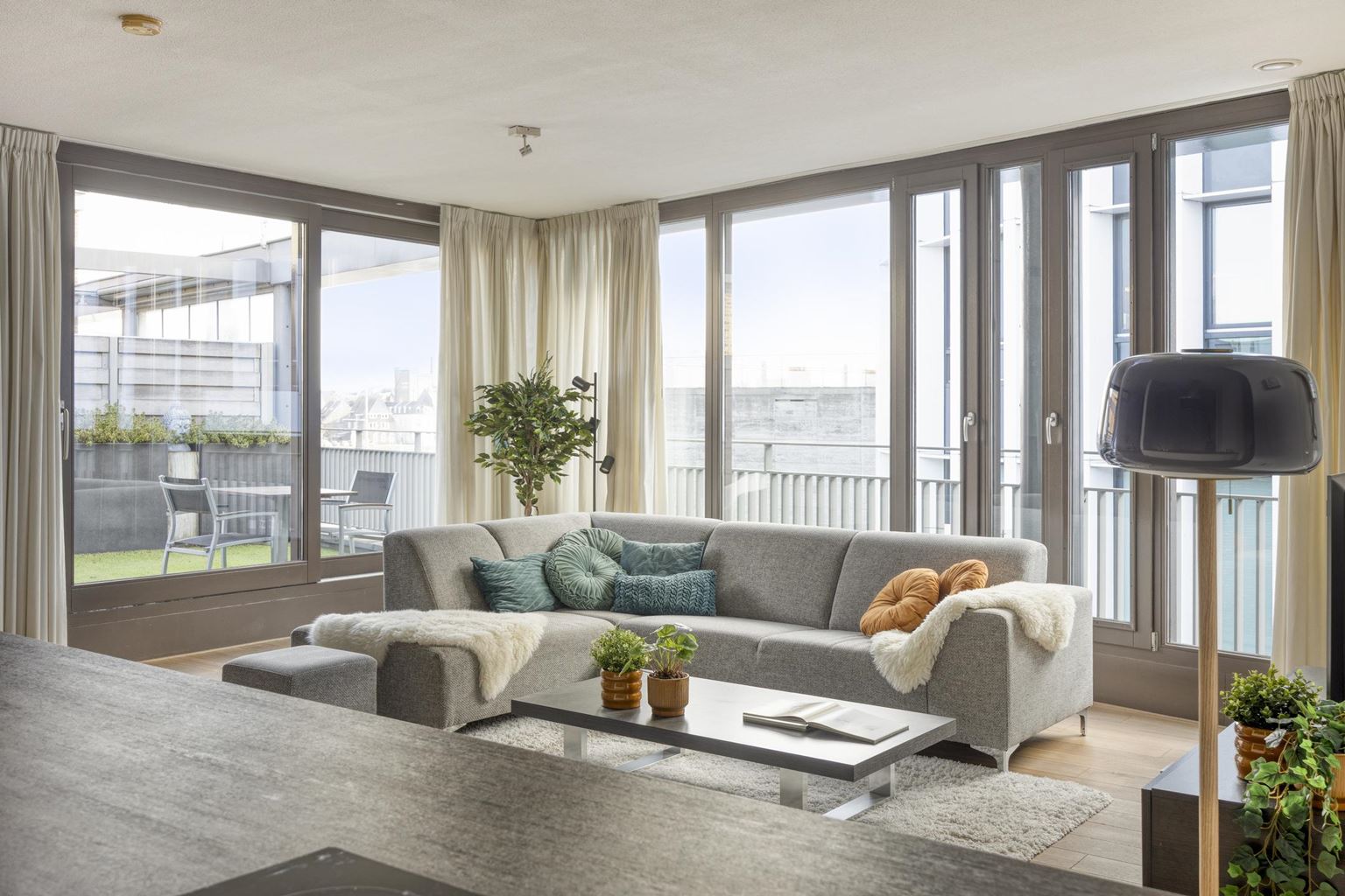 Via de woonkamer heeft men toegang tot het royale dakterras, waar men in alle rust kan genieten van het uitzicht over de Maas en de levendige omgeving van het Mosae Forum.
