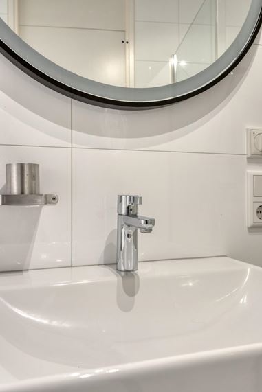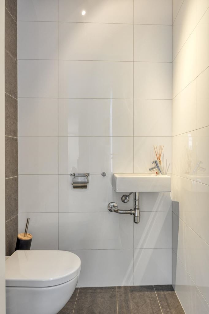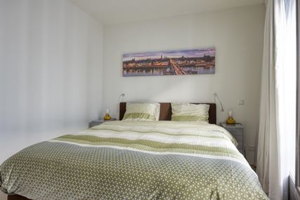 De slaapkamer is voorzien van een ruime 4-deurs garderobekast en een staande Dyson airconditioning. De smaakvol ingerichte badkamer beschikt over een ligbad, inloopdouche en enkele wastafel. Daarnaast is er een separate, moderne toiletruimte met wandcloset en fonteintje.