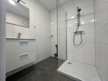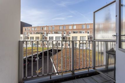 Overloop met meterkast, cv-ruimte en toegang tot de overige vertrekken. Ruime woonkamer (26m2) met veel lichtinval en open keuken. De luxe open keuken (5m2) is voorzien van een spoelbak, 4-pits inductiekookplaat, RVS afzuigkap, grote koelkast met vriesvak, combi-oven en vaatwasser. De badkamer (4m2) beschikt over een inloopdouche, wastafel en designradiator. Tevens bevindt zich hier de witgoedaansluiting. Het toilet is separaat gelegen (1m2). Aan de achterzijde van de woning liggen de 2 slaapkamers (12m2 en 5m2). Vanuit de kleine slaapkamer is het balkon te betreden, gelegen op het zuidwesten.