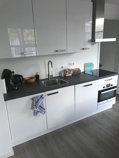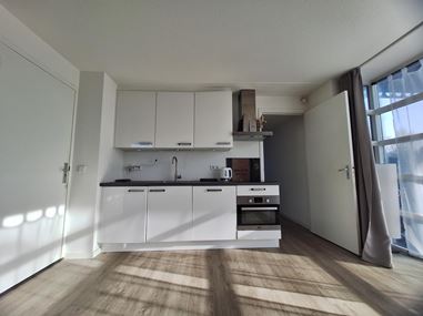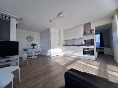 Bij binnenkomst wordt u verwelkomd in een ruime hal, voorzien van een handige meterkast en een trap die leidt naar de tweede verdieping. De hal biedt direct toegang tot de verschillende ruimtes van het appartement en creëert een gastvrije sfeer. De lichte en gezellige woonkamer is het hart van het appartement. Grote ramen zorgen voor veel natuurlijke lichtinval en geven toegang tot het balkon, waar u heerlijk van de buitenlucht kunt genieten. De volledig uitgeruste keuken is modern en praktisch ingericht, met voldoende opbergruimte en alle benodigde apparatuur om uw culinaire creativiteit de vrije loop te laten. De aparte slaapkamer biedt rust en privacy en is ruim genoeg voor een comfortabel bed en extra meubels. De nette badkamer is uitgerust met een douche, wastafel en toilet, waardoor functionaliteit en comfort perfect samenkomen. Het balkon, bereikbaar vanuit de woonkamer, is een ideale plek om te ontspannen, een boek te lezen of te genieten van een kop koffie in de ochtendzon.