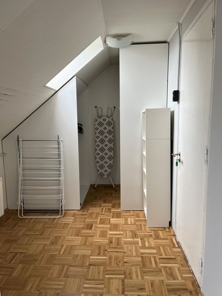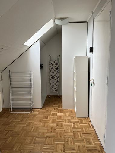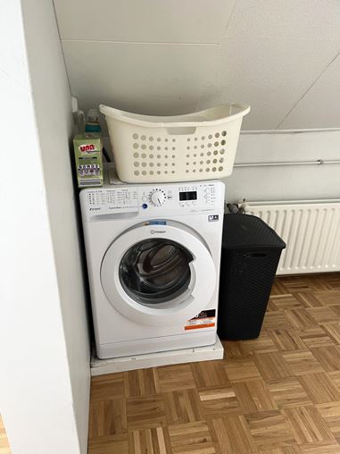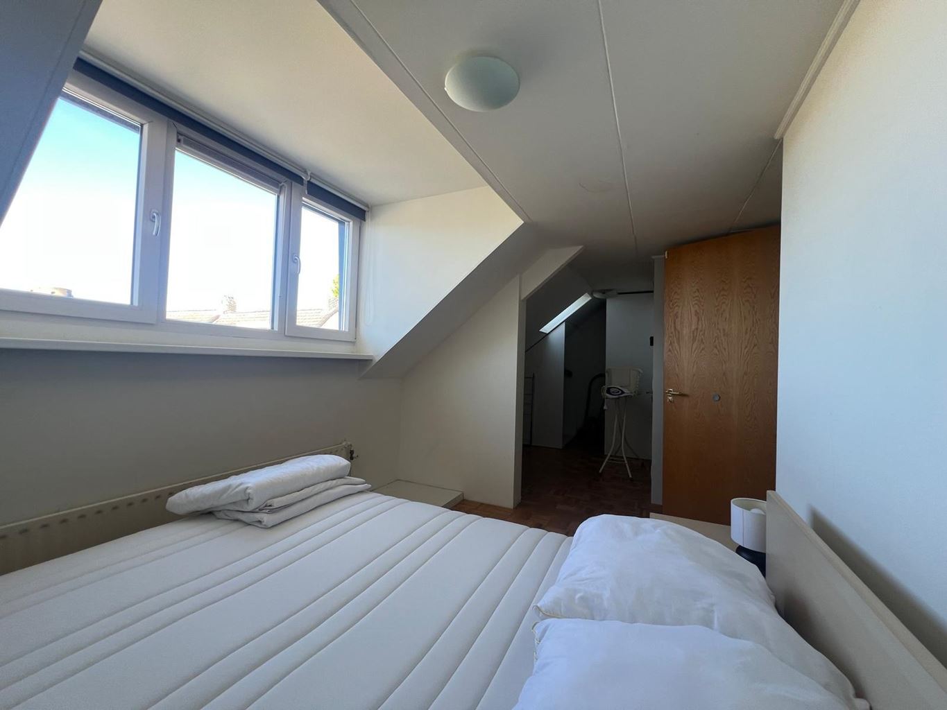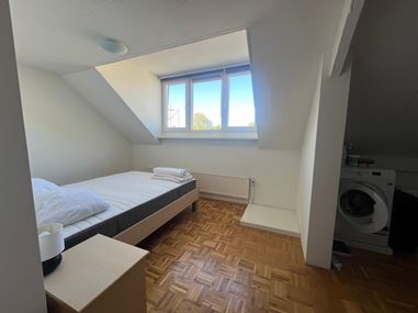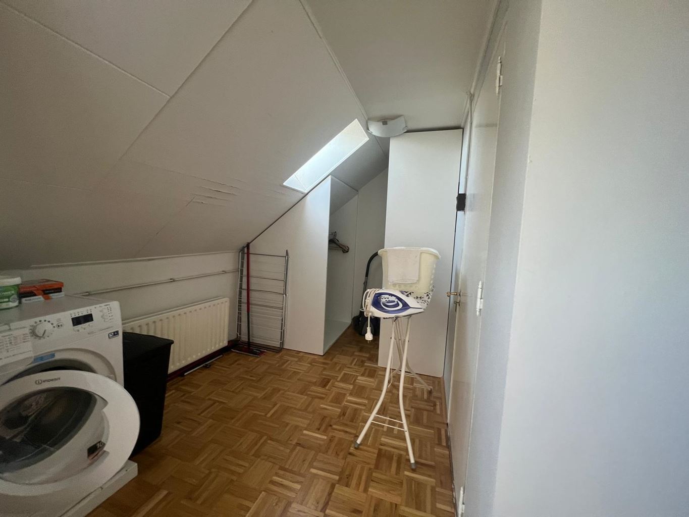 Aan de achterzijde van het appartement vind je de slaapkamer, die extra praktisch is dankzij een aparte kastruimte en een plek voor de wasmachine.