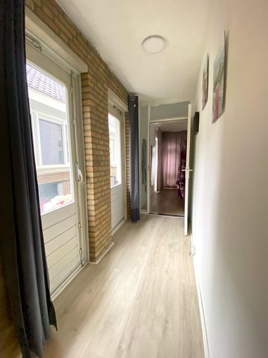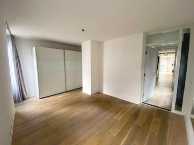 Via de overloop is er toegang tot een klein maar sfeervol balkon van circa 2 m². De slaapkamer, gelegen aan de rustige achterzijde van het appartement, beschikt over ramen én een deur naar het ruime dakterras. De aanwezige, stijlvolle kledingkast blijft achter in de woning.