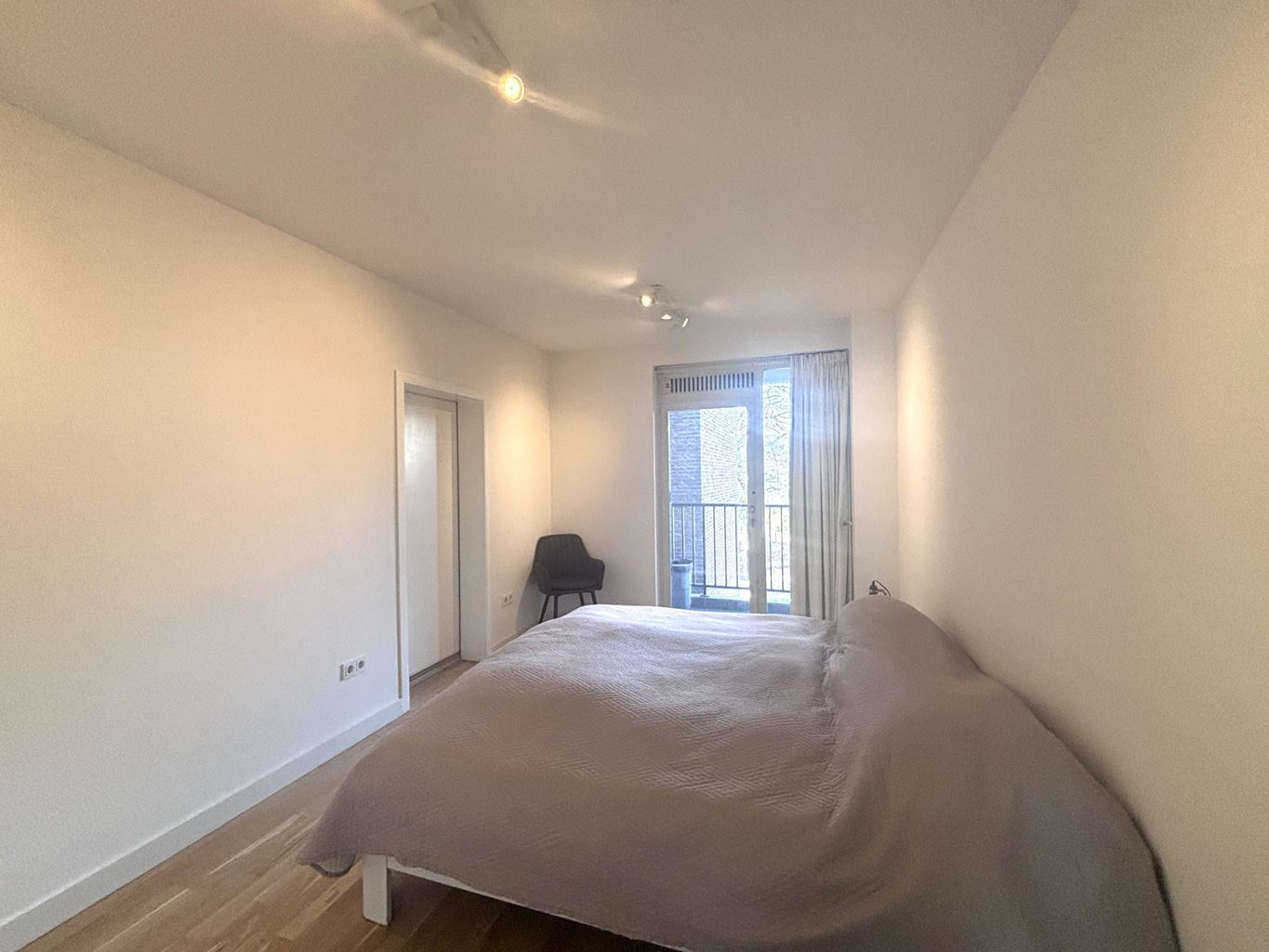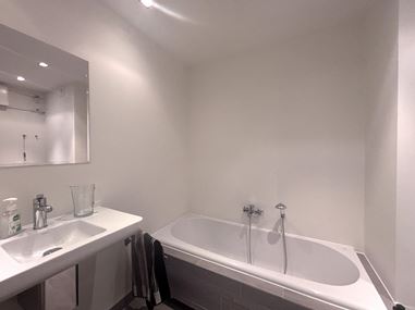 Vanuit de woonkamer heeft u toegang tot de slaapkamer. De slaapkamer is gelegen aan de rustige achterzijde van het appartementencomplex en biedt voldoende ruimte voor een comfortabel slaapgedeelte. Vanuit de slaapkamer bereikt u de badkamer. De badkamer is voorzien van een ligbad, een ruime inloopdouche en een wastafel. Daarnaast biedt de slaapkamer toegang tot het tweede balkon, dat eveneens aan de achterzijde van het complex is gelegen. Dit balkon biedt een rustige buitenruimte waar u kunt ontspannen.