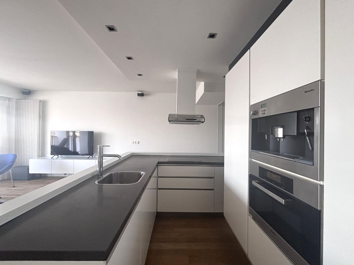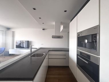 De open keuken sluit naadloos aan op de woonkamer en is modern ingericht. De keuken is voorzien van diverse inbouwapparatuur, waaronder een 4-pits inductiekookplaat, afzuigkap, vaatwasser, koelkast, oven en een ingebouwde koffiemachine. Hierdoor beschikt de keuken over alle benodigde voorzieningen voor comfortabel dagelijks gebruik.